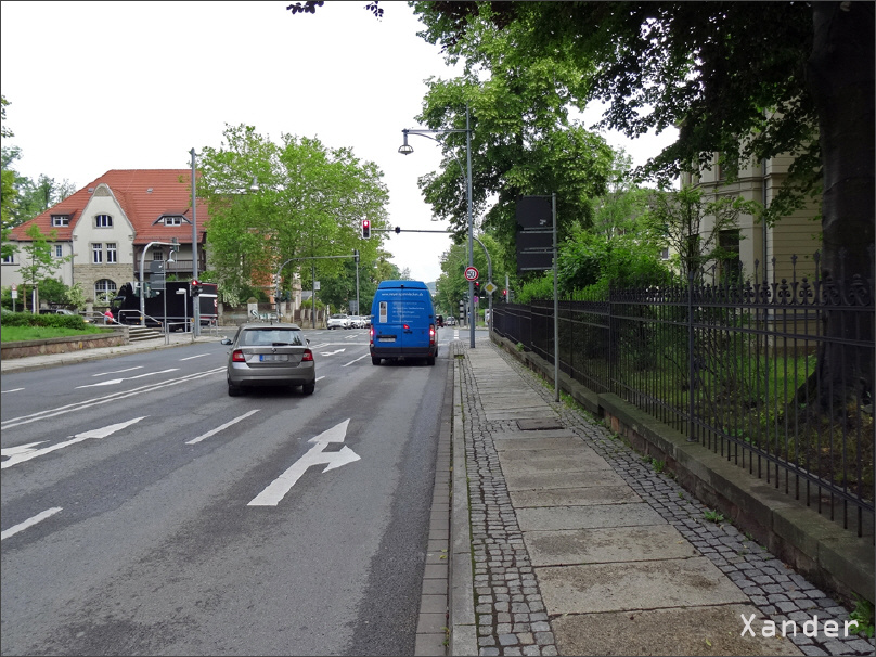 Derzeit (Juni 2025) endet das Tempolimit vor der Kreuzung Weststraße. Denkbar ist aber eine künftige Verlängerung über die Kreuzung hinaus. (4/6)