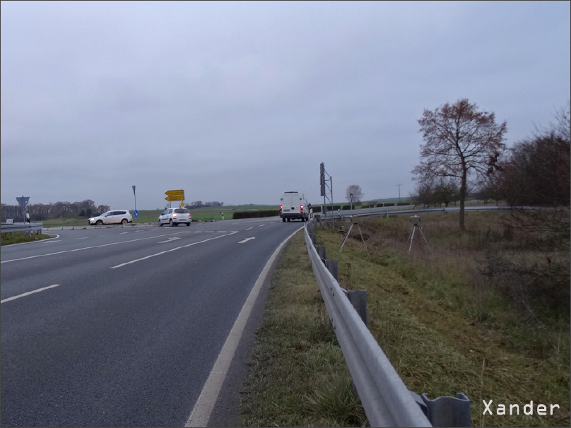 Ein Großteil der Verkehrsteilnehmer biegt links auf die St 2259 gen Großenseebach, Weisendorf und Gerhardshofen (B 470) ab. Der Einmündungsbereich ist entsprechend stark frequentiert. (4/8)
