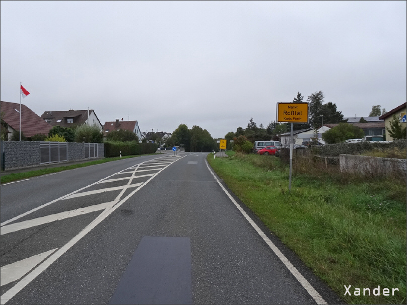 Aus Richtung der B 14 kommend erreichen wir den Ortseingang von Roßtal. (1/12)