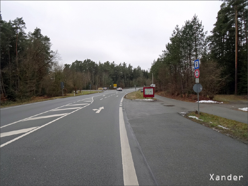 Während die St 2239 nach links abzweigt, schließt sich geradeaus die St 2401 an und führt durch den nördlichen Teil Feuchts gen Nürnberg. (3/6)
