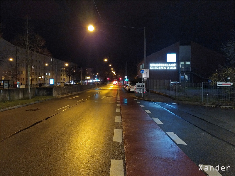 Rechts liegt die Heinrich-Alfes-Straße, die nach dem Gründer der örtlichen Straßenbahngesellschaft benannt ist. Dort befindet sich der Betriebshof der Nürnberger Straßenbahnen. (4/6)