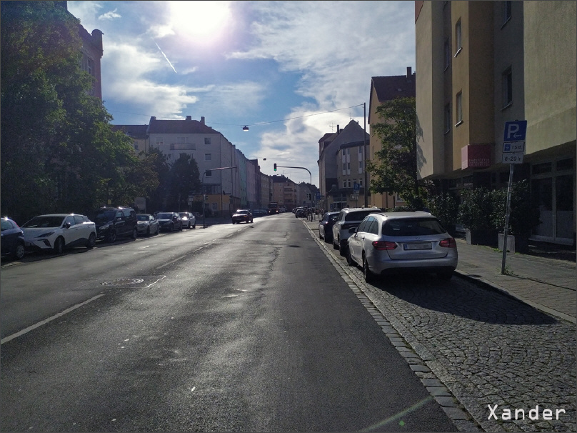 Links von uns befindet sich das Schulgebäude. Die Bilder zeigen eine Messung am Vormittag in den Sommerferien, weshalb weniger Verkehr als sonst üblich herrschte. (2/6)