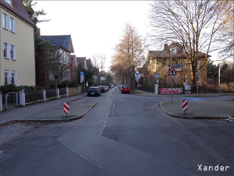 Der Schildweg mündet von rechts ein und führt geradeaus bis zur Keplerstraße. (3/8)