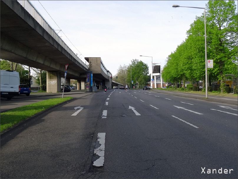 Im Hintergrund befindet sich die Kreuzung Escher Straße mit der gleichnamigen Haltestelle der Stadtbahn. (3/6)