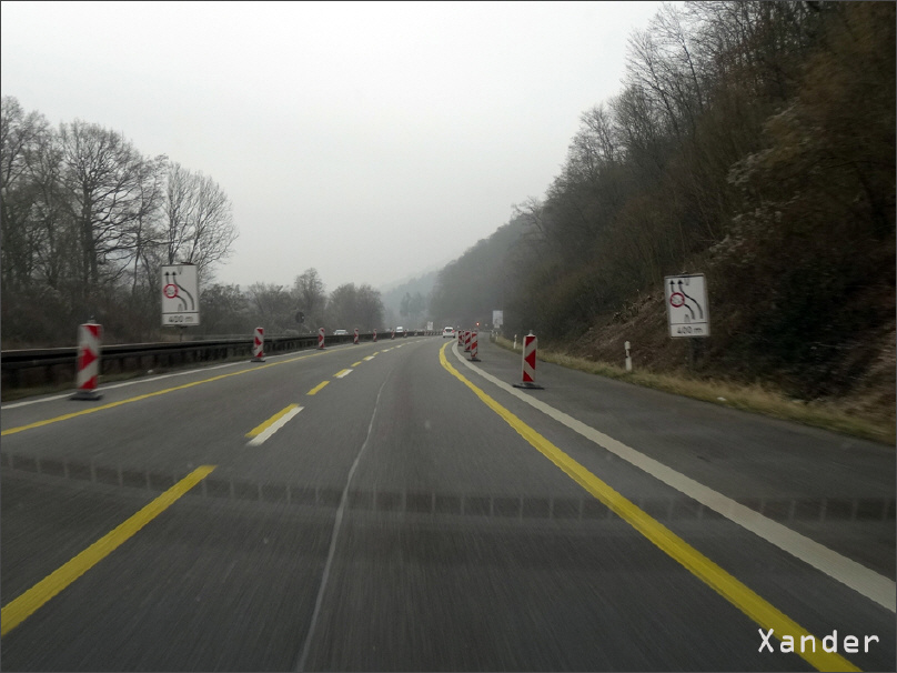 Zwischen den Anschlussstellen Saarbrücken-Fechingen und St. Ingbert-West befinden wir uns in der Baustelle der Grumbachtalbrücke. (1/8)