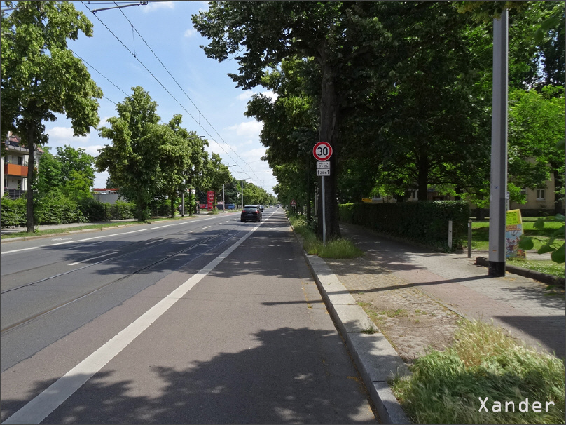 Nach der Einmündung Dorotheenstraße erwartet uns ein zeitweises Tempolimit von 30 km/h. (1/6)