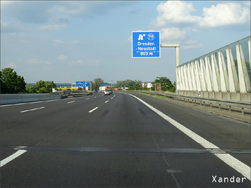 Jenseits der Elbe erwartet uns im Bereich der Kaditzer Kläranlage der Hinweis auf die kommende AS Dresden-Neustadt. (5/15)