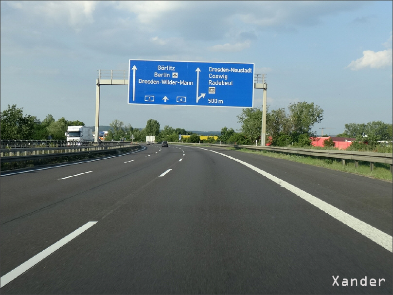 In diesem Teil der A 4 sammelt sich der Verkehr aus oder nach Leipzig (A 14), Prag (A 17) und Berlin (A 13). (6/15)