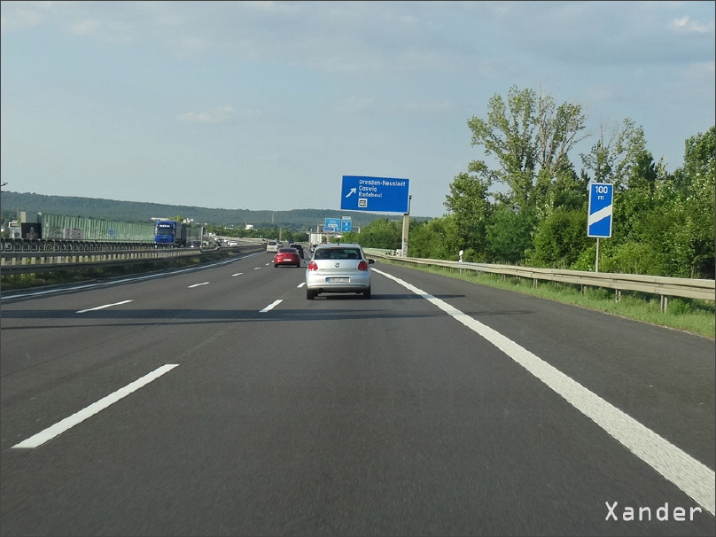 Entsprechend hoch sind das Verkehrsaufkommen und die Unfallzahlen. Da die Unfallzahlen nach Einführung der Tempolimitierung von 100 km/h merklich gesunken sind, wurde die Beschränkung über einen Verkehrsversuch hinaus fortgeführt. (8/15) | ![]() |