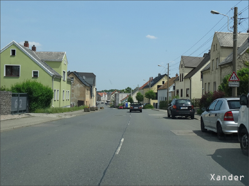 Wir sind stadteinwärts unterwegs. Die Beschilderung weist auf den Schulweg hin. (1/5)