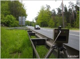 Kontrolle durch die Verkehrspolizei Bayreuth mit LKW-Messungen (60km/h) am zweiten Parkplatz nach der Autobahn